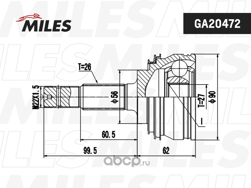 All World Cars - продажа товаров бренда Miles по всей России и странах СНГ. Развитая сеть представительств с быстрой доставкой товаров Miles и с гарантией выгодной цены. Покупая в AWC ШРУС TOYOTA CELICA/CAMRY/PREVIA/LEXUS ES250 2.0-2.5 89-01 нар. (GKN 302814) GA20472 вы бережете свое время, нервы и деньги. Каталожный номер производителя GA20472