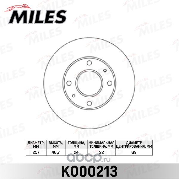 All World Cars - продажа товаров бренда Miles по всей России и странах СНГ. Развитая сеть представительств с быстрой доставкой товаров Miles и с гарантией выгодной цены. Покупая в AWC Диск тормозной HYUNDAI ELANTRA 00-/LANTRA/MATRIX 01-/KIA CERATO 1.6 06- передний вы бережете свое время, нервы и деньги. Каталожный номер производителя K000213