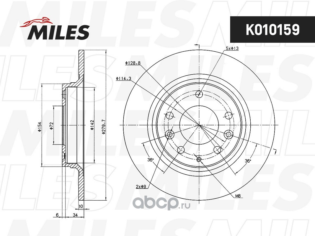 All World Cars - продажа товаров бренда Miles по всей России и странах СНГ. Развитая сеть представительств с быстрой доставкой товаров Miles и с гарантией выгодной цены. Покупая в AWC Диск тормозной MAZDA 6 07>/MX-5 08>/MAZDA 323 01>04/MAZDA 626 99>02 задний вы бережете свое время, нервы и деньги. Каталожный номер производителя K010159