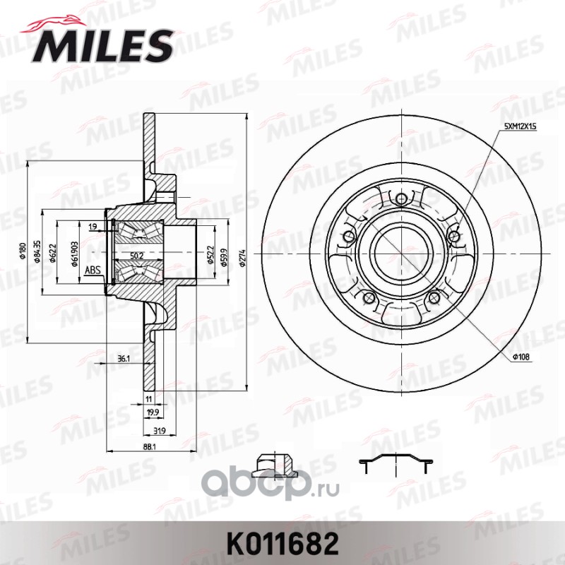 All World Cars - продажа товаров бренда Miles по всей России и странах СНГ. Развитая сеть представительств с быстрой доставкой товаров Miles и с гарантией выгодной цены. Покупая в AWC Диск тормозной RENAULT KANGOO 08- задний с подшипником,с кольцом АБС вы бережете свое время, нервы и деньги. Каталожный номер производителя K011682