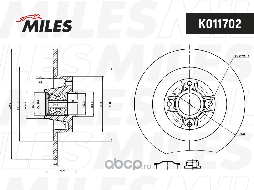 All World Cars - продажа товаров бренда Miles по всей России и странах СНГ. Развитая сеть представительств с быстрой доставкой товаров Miles и с гарантией выгодной цены. Покупая в AWC Диск тормозной RENAULT MEGANE II/SCENIC II 03- задний с подшипником вы бережете свое время, нервы и деньги. Каталожный номер производителя K011702