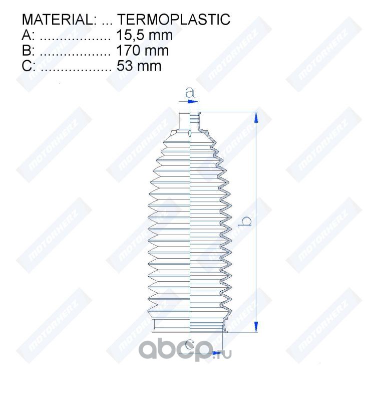 All World Cars - продажа товаров бренда Motorherz по всей России и странах СНГ. Развитая сеть представительств с быстрой доставкой товаров Motorherz и с гарантией выгодной цены. Покупая в AWC Пыльник рулевой рейки вы бережете свое время, нервы и деньги. Каталожный номер производителя RDZ0555MG