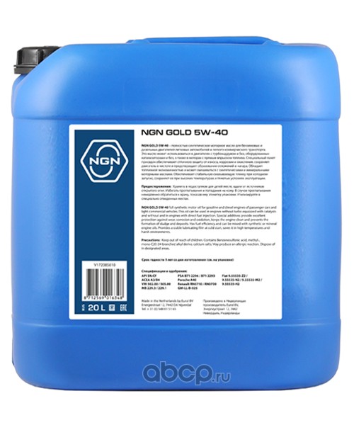 All World Cars - продажа товаров бренда NGN по всей России и странах СНГ. Развитая сеть представительств с быстрой доставкой товаров NGN и с гарантией выгодной цены. Покупая в AWC Моторное масло синт. 5W-40 SN/CF GOLD 20L вы бережете свое время, нервы и деньги. Каталожный номер производителя V172085810