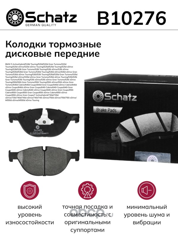 Schatz B10276 Колодки тормозные дисковые передние BMW 5 ActiveHybrid/518d Touring/520d/520d Gran