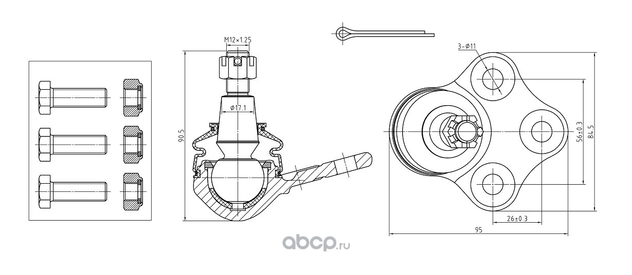 MOBILAND 130101490 Опора шаровая передней подвески левая/правая нижняя для а/м RENAULT MEGANE III хэтчбек (BZ0/1_, B3_)