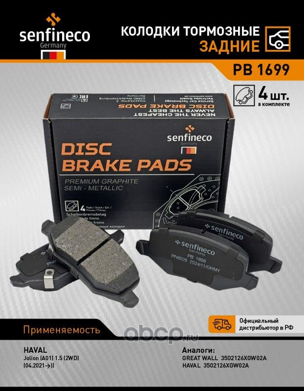 SENFINECO PB1699 Колодки тормозные задние