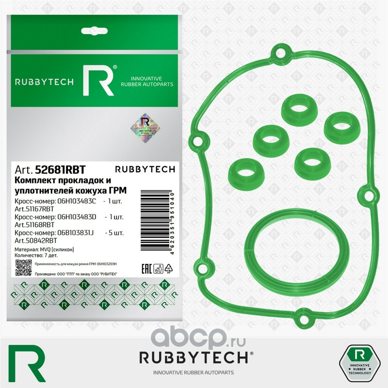 Расширенное описание: Прокладки кожуха ГРМ VAG, силикон MVQ, к-т 7 дет.