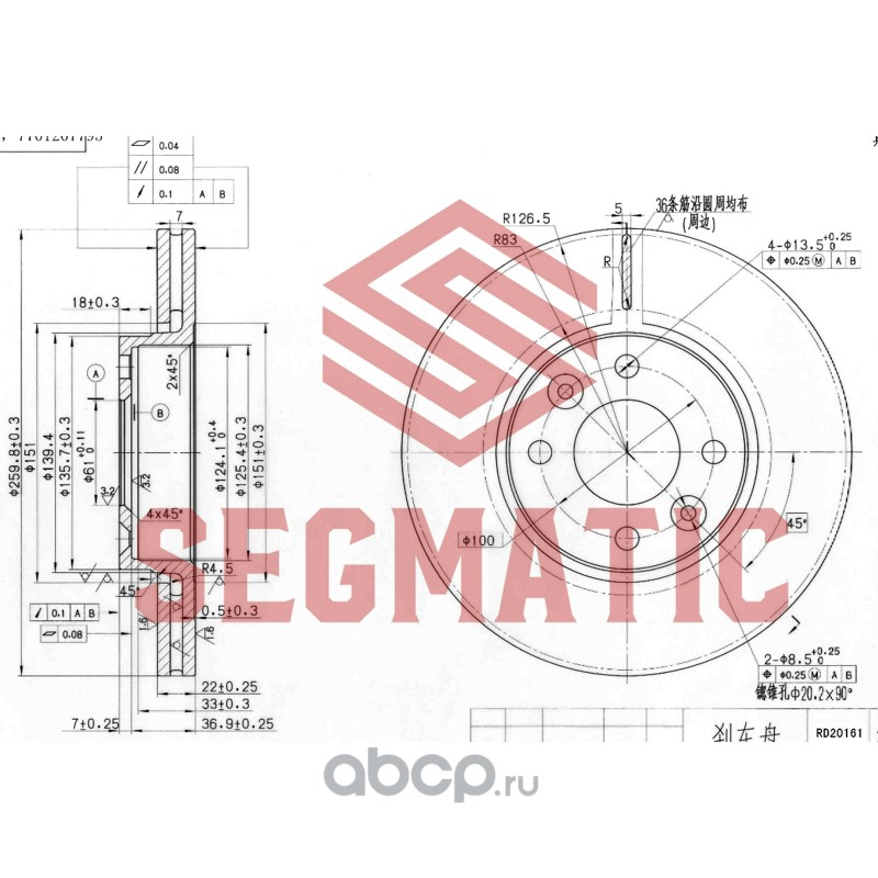 Расширенное описание: Диск тормозной пер вент. RENAULT Logan 1.2/1.4/1.5/1.6 05-, Logan MCV 07-, Clio I/II, Megane I, Lada Vesta (15-)- [260x44x22]