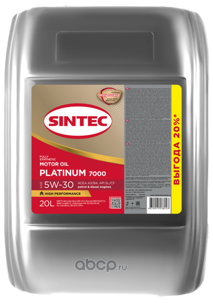 Масло моторное синтетическое Sintec Platinum 7000 SAE 5W-30 ACEA A3/B4 API SL/CF 20л