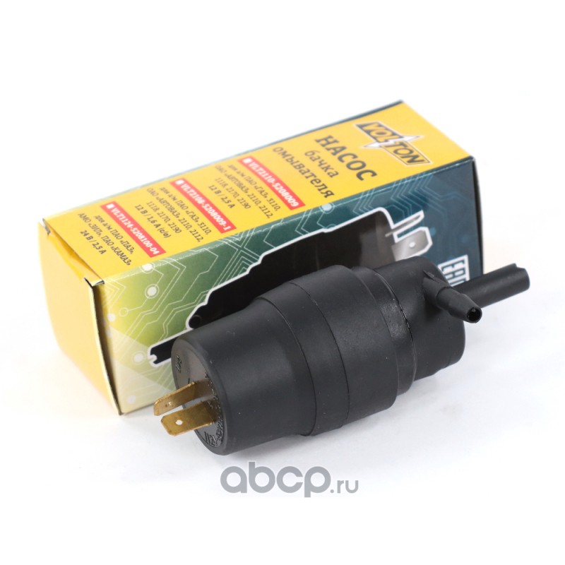 Расширенное описание: Насос омывателя для автомобилей КАМАЗ/ЗИЛ (2.5 АТМ, 24В) (контакты по центру) нового образца