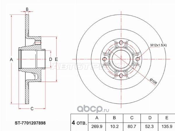 Sat ST7701207898 Диск тормозной (Зад) Renault Megane 02-06 / Scenic 03-06