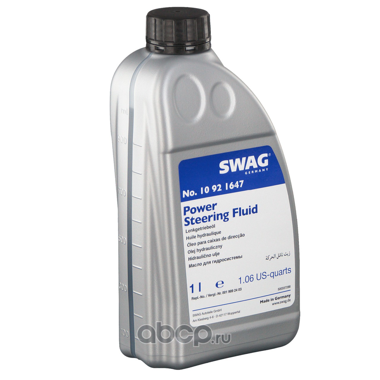 All World Cars - продажа товаров бренда Swag по всей России и странах СНГ. Развитая сеть представительств с быстрой доставкой товаров Swag и с гарантией выгодной цены. Покупая в AWC Жидкость гидроусилителя руля вы бережете свое время, нервы и деньги. Каталожный номер производителя 10921647