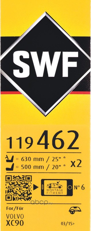 All World Cars - продажа товаров бренда Swf по всей России и странах СНГ. Развитая сеть представительств с быстрой доставкой товаров Swf и с гарантией выгодной цены. Покупая в AWC Комплект Щеток стеклоочистителя VISIOFLEX бескаркасный 630мм/25`+500мм/20` (Узкая кнопка 16) вы бережете свое время, нервы и деньги. Каталожный номер производителя 119462