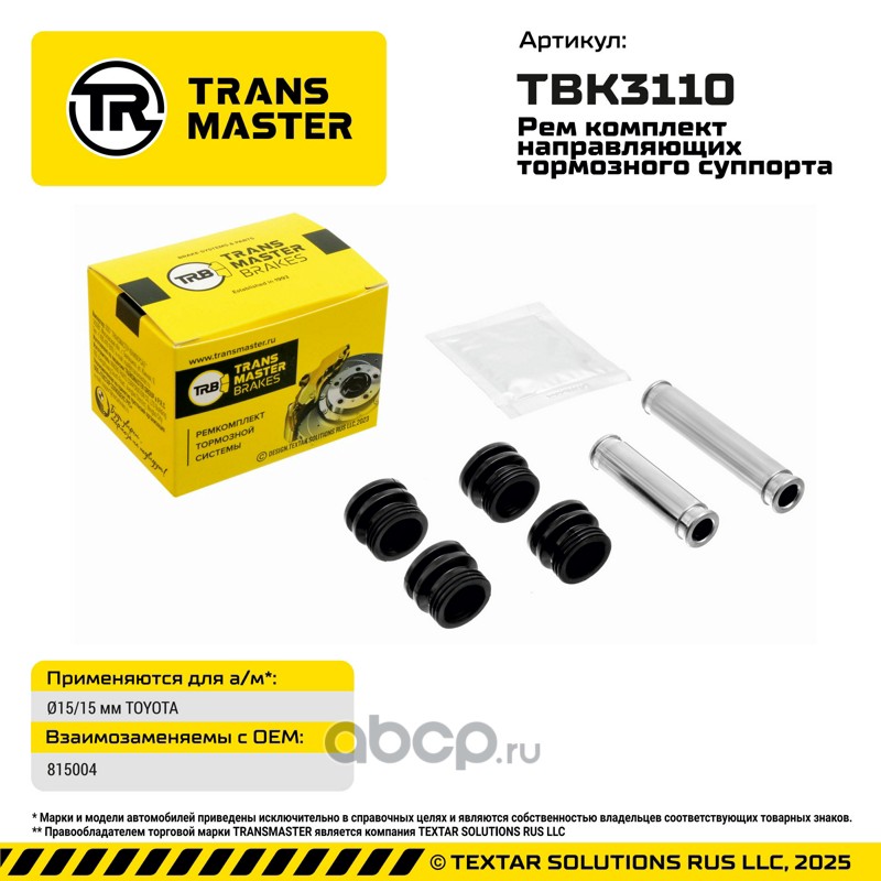 TRANSMASTER TBK3110 Ремкомплект направляющих тормозного суппорта