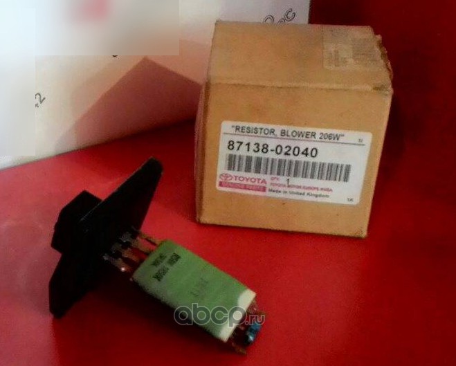 Резистор печки пришел дней за 40, идентичен тому который стоял в машине, работает отлично, на коробке написан что сделан на заводе тойота-лексус. Если не работает вентилятор печки-кондиционера, то дело в 8713802040, а именно в температурном предохранителе, стоит в магазине 50р (2015г), проблема приварить (припой слишком плавкий - резистор отпадет после установки).