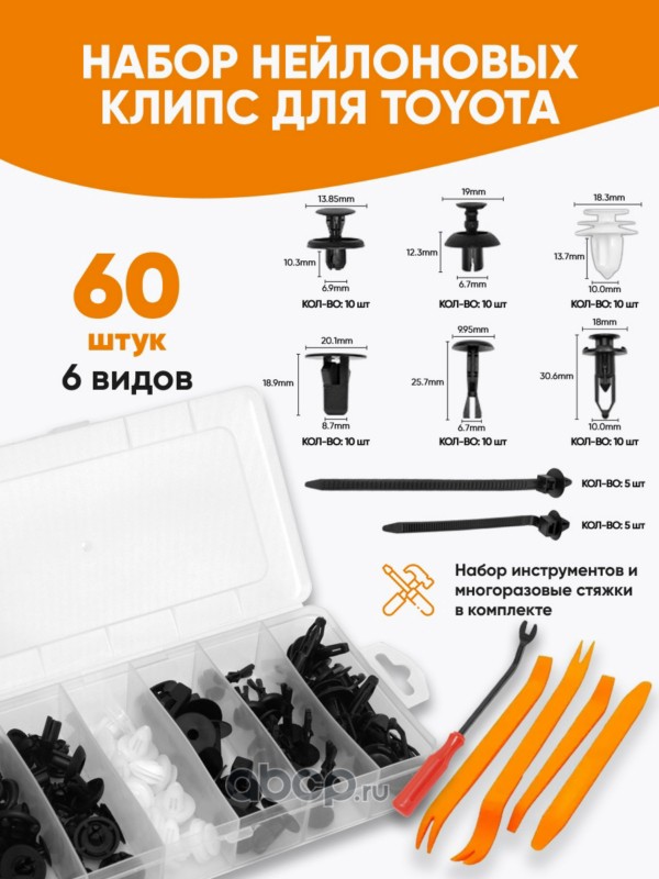 МАВИКО MCC0001 Набор нейлоновые автомобильные клипсы 60 шт., стяжки 10 шт., лопатки-съемники 5 шт. для Toyota Lexus