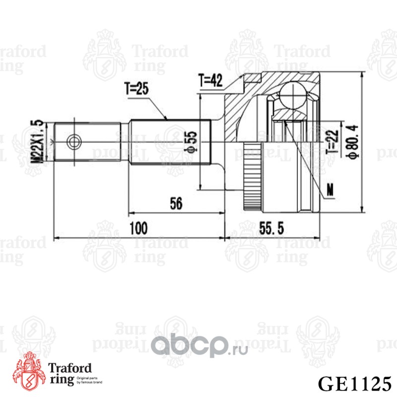 Trialli GO1412 ШРУС для а/м Nissan Almera N16 (00-) 1.5i без ABS (наруж.) (22шлц.)