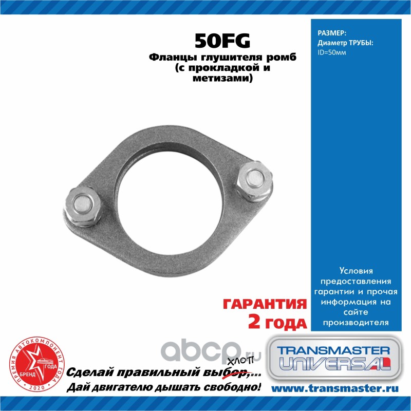 Фланцы глушителя d50 мм ромб комплект 2 шт. с прокладкой и метизами