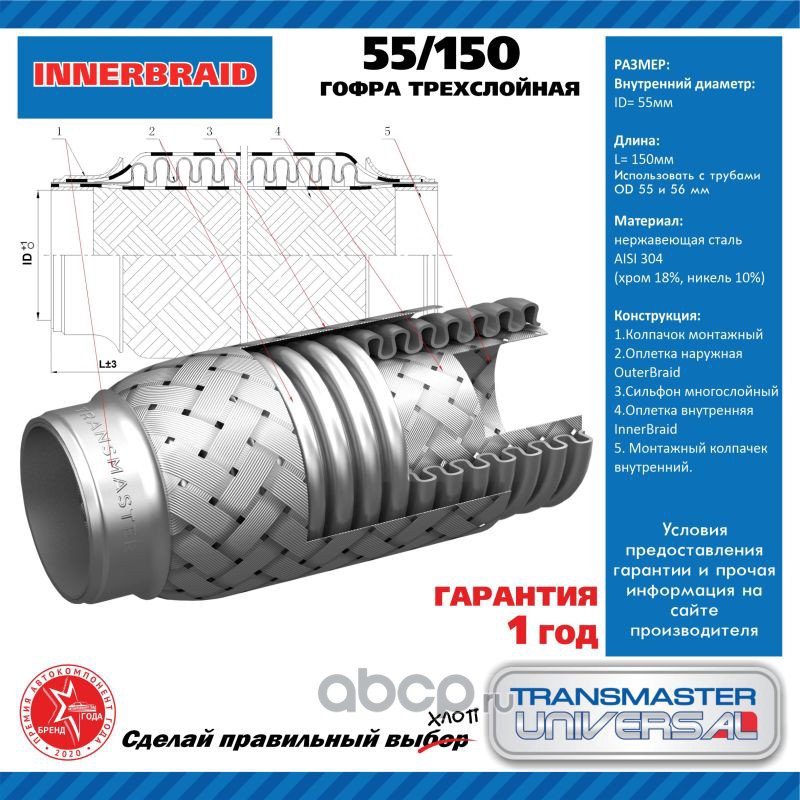 Расширенное описание: ГОФРА ГЛУШИТЕЛЯ 3-ЕХ СЛОЙНАЯ INTERLOCK