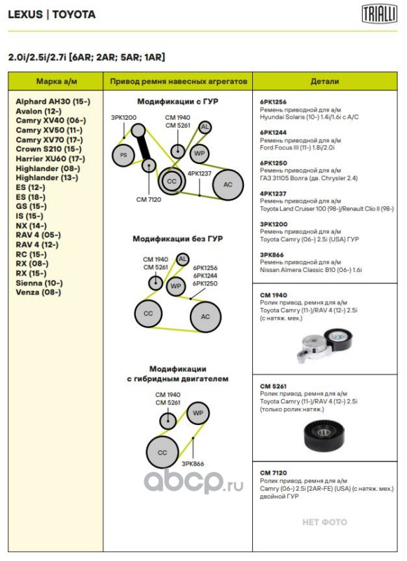 Расширенное описание: Ролик привод. ремня для автомобилей Toyota Camry (11-)/RAV4 (12-) 2.0i/2.5i/2.7i [AR] (с натяж. мех.) (CM 1940)