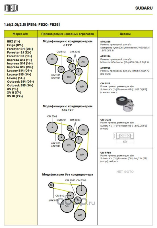 Расширенное описание: Ролик приводного ремня для автомобилей Subaru XV (11-)/Forester SH (08-) 1.6i/2.0i [FB] (опорный)