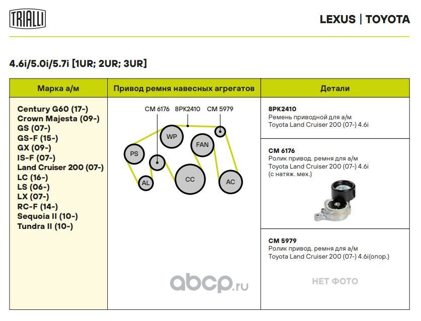 Расширенное описание: Ролик привод. ремня для автомобилей Toyota Land Cruiser 200 (07-) 4.6i [UR] (с натяж. мех.) (CM 6176)