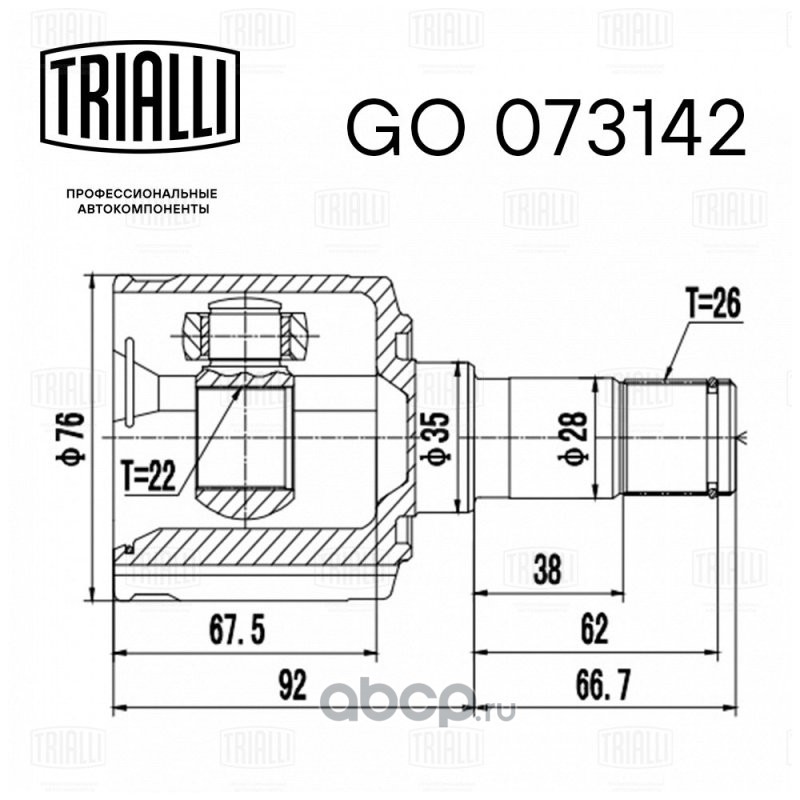 Расширенное описание: ШРУС внутренний левый для автомобилей Kia Spectra (Ижевск 00-) 1.6i MT