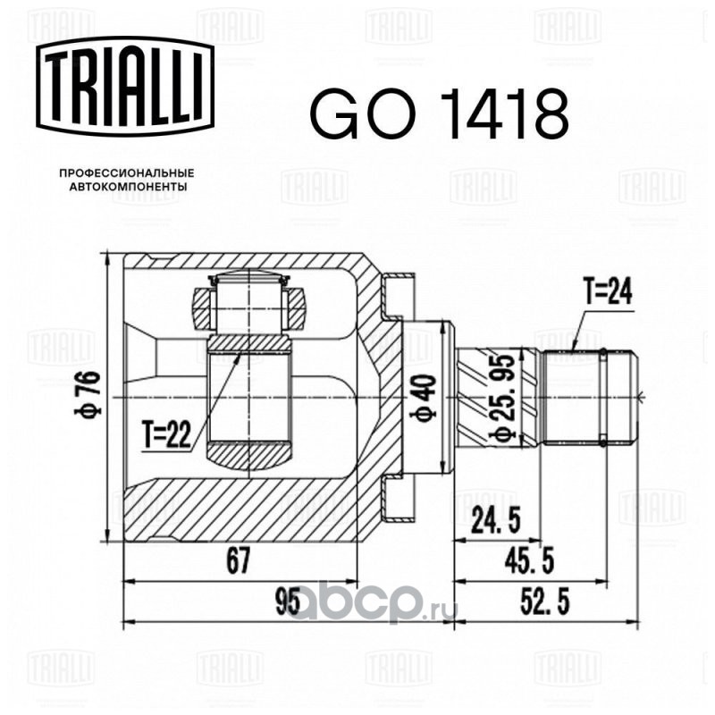 ШРУС для а/м Nissan Almera N16 (00-)/Almera Classic (06-) MT (внутр.) (22 шлц.)