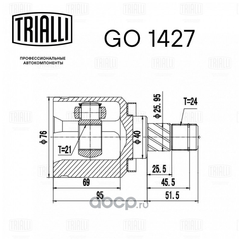 Расширенное описание: ШРУС внутренний для автомобилей Almera N16 (00-) (21шлц.)