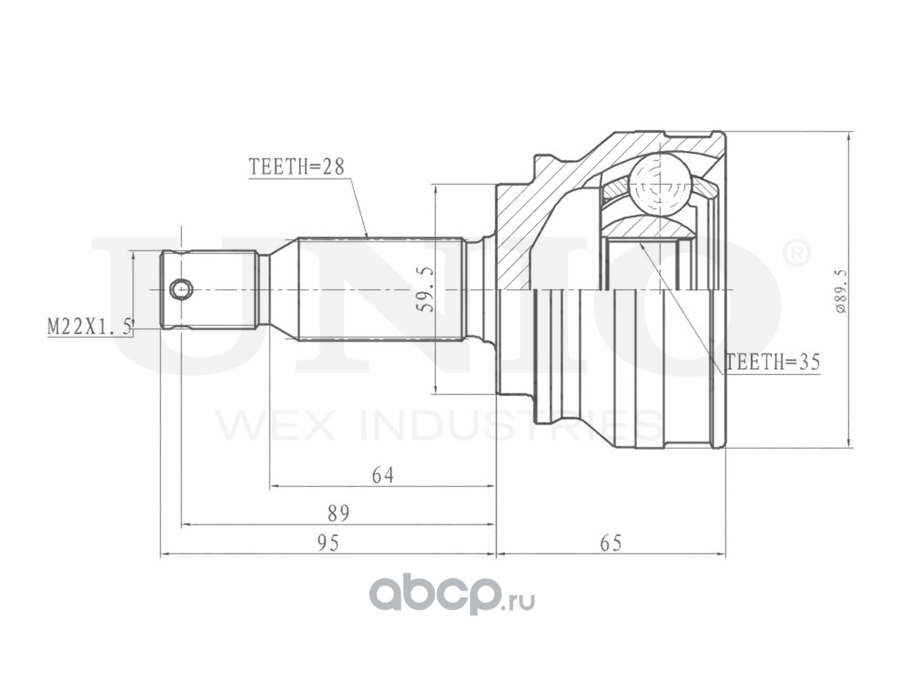 Расширенное описание: ШРУС внешний Mitsubishi Outlander II 05-, Peugeot 4007 07-, Citroen C-Crosser 09- (МКПП/АКПП)