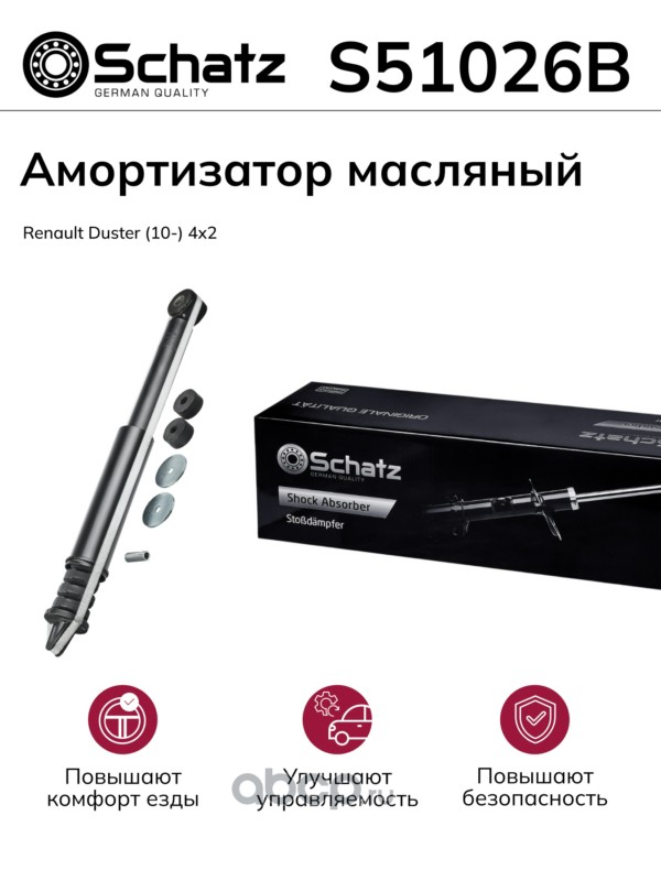 Schatz S51026B Амортизатор Масляный с газовым подпором низкого давления Задний л/п Renault Duster (10-) 4x2