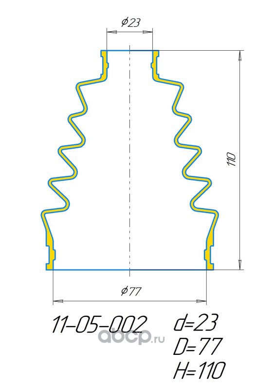 Пыльник ПОЛИУРЕТАНОВЫЙ (УСИЛЕННЫЙ), КОМПЛЕКТ с ХОМУТАМИ,) НАРУЖНЫЙ ( d=23 / D= 77 / H= 110)