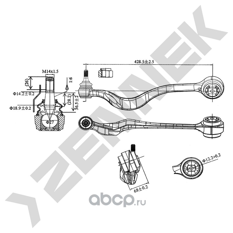 Поперечный рычаг подвески без сайлентблока, с шарниром и стопорной гайкой |