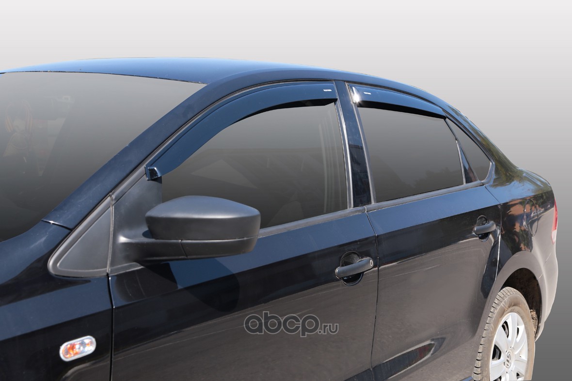 Дефлекторы неломающиеся на боковые стекла Voron Glass серия Samurai для а/м Volkswagen Polo 2010-н.в. /седан /накладные /скотч /к-т 4шт/