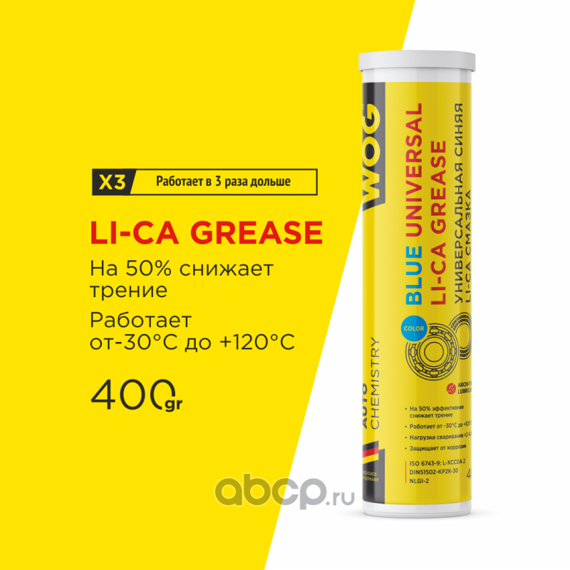 Синяя противозадирная литиево-кальц. высокотемпературная водостойкая смазка (до +120С) WOG, 400 гр