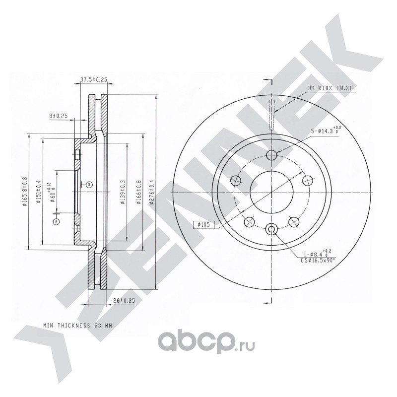 Расширенное описание: Диск тормозной передний CHEVROLET AVEO 11->, CRUZE 10->