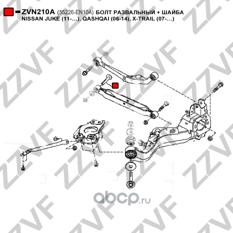 DEQST 122004 Болт подвески эксцентриковый NISSAN QASHQAI (J10,JJ10,J11), X-TRAIL (T31,T32), JUKE (F15) (10-14), RENAULT KOLEOS (HY,HC) (комплект с гайкой, шайбой)
